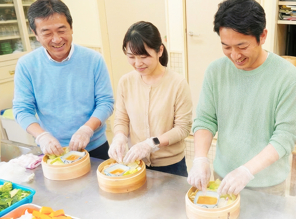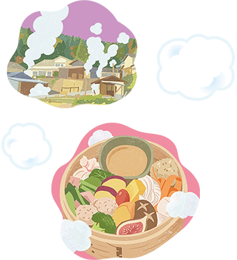 ここでしか味わえない、地熱蒸気を使った蒸し料理の体験です。地元でとれた椎茸や新鮮な野菜をふんだんに使い、海老真丈や茶碗蒸しも手作りで調理。一人ひとつ、自分好みに蒸籠へ盛り付けます。素材の持ち味を引き出す蒸し料理の知恵や、この地域に根づく蒸し文化に触れながら、出来立てを味わう特別な体験。ご自宅でも楽しめる「蒸し料理のヒント集」付きです。
