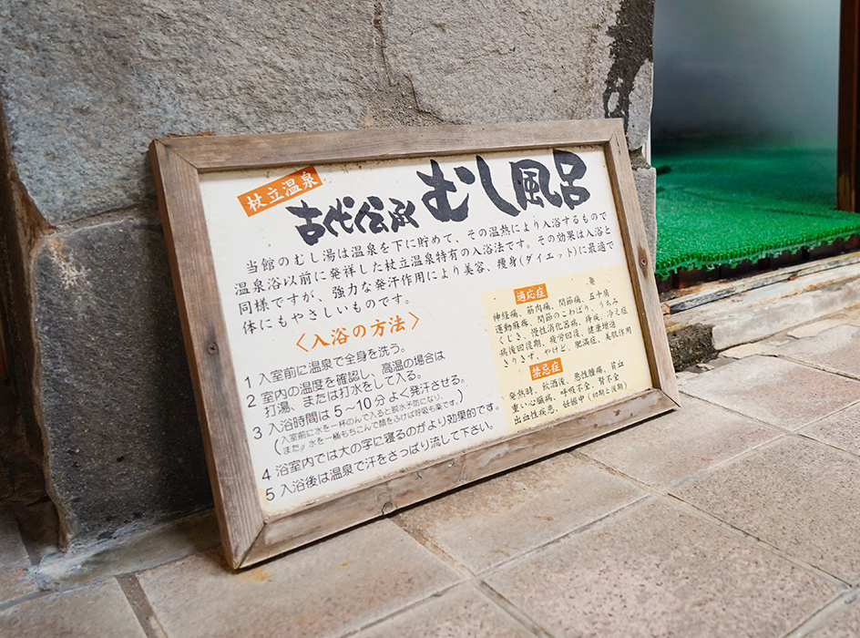 開湯1800年の杖立温泉街を巡りながら、歴史や文化に触れていきます。その後、伝統の蒸し風呂でじっくりと体を温め、小国杉で作られた特別なマッサージスティックで心身を整えるひとときを。お風呂上りには、お宿特製のほうじ茶プリンと蒸し卵でホッと満たされる、ここでしか味わえない癒しの時間です。